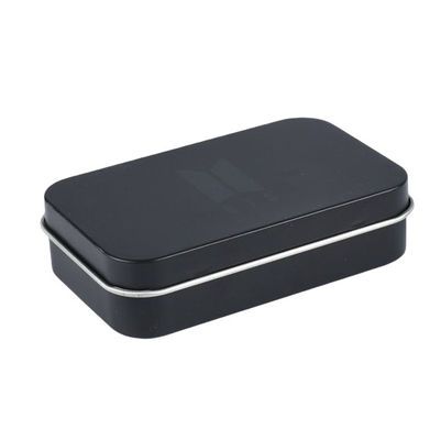 민트 주석 포장용 경첩식 뚜껑이 있는 매트 블랙 직사각형 민트 주석 상자